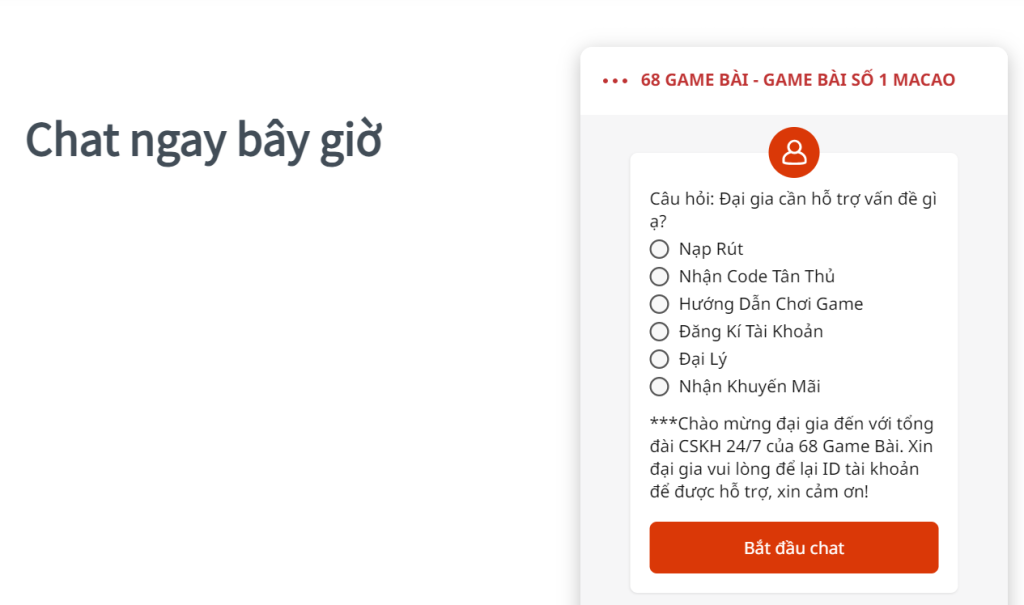 Hình thức đầu tiên cũng là đơn giản nhất mà anh em có thể sử dụng để liên hệ với 68gb chính là live chat. Hình thức này được thiết kế sẵn tại giao diện của cổng game. Và để có thể liên hệ theo phương thức này, anh em chỉ cần thao tác như sau: